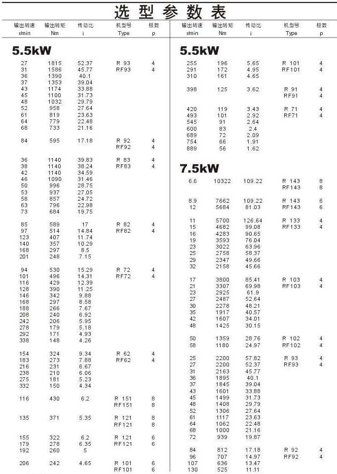 選型參數(shù)表5.5kW(續(xù))和7.5kW
